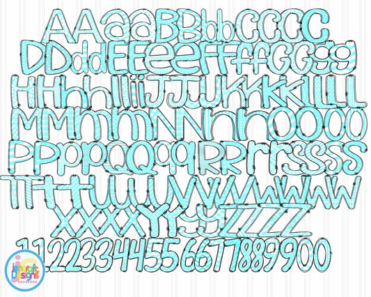 Teal Doodle Letters Png | Alphabet Letters Png Sublimation File